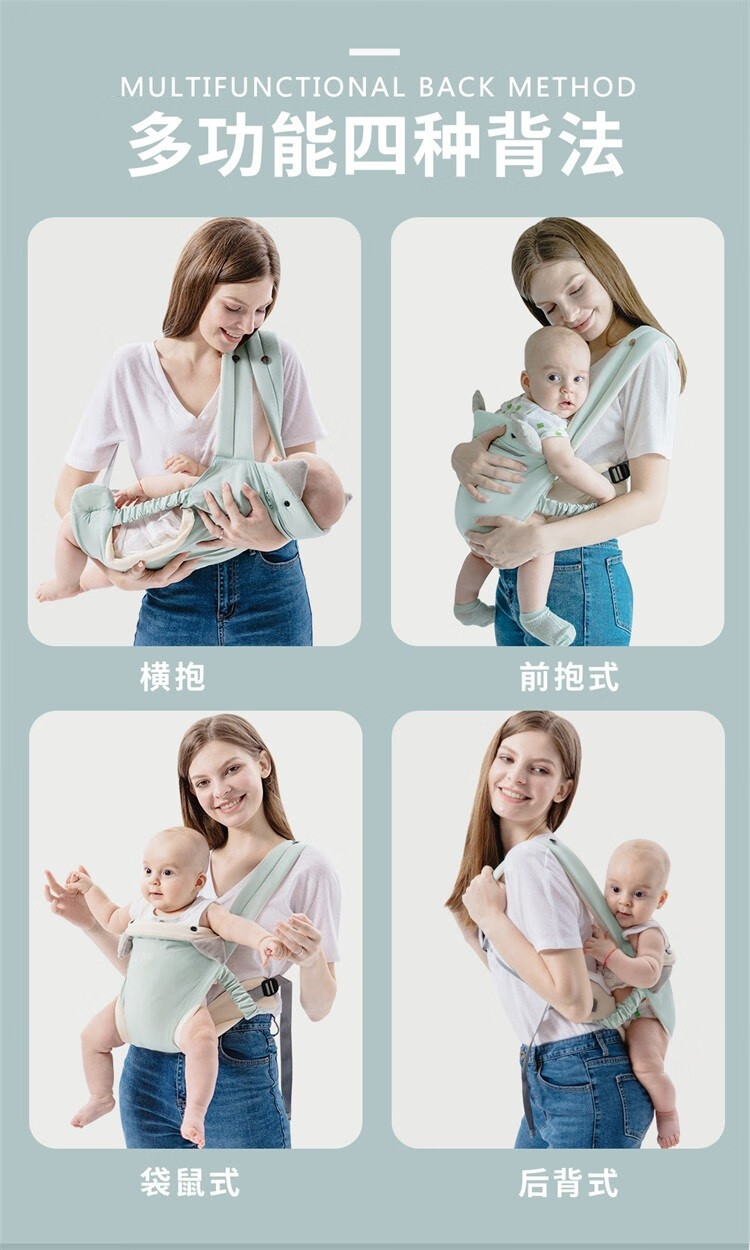 Ipoosi baby shoulder strap for both front and back use in summer. Small month old newborns hold babies horizontally in front of each other's arms, with a magical tool called green mustard blue [0-36 months old] protective cap and pocket