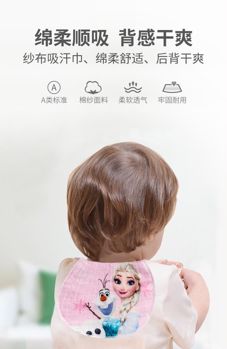 Disney Baby A-Class Cotton Cotton Sweat Absorber Baby 0-2-6 Year Old Pad Baby Sling Han Scarf Sweat Blocker Four Layer Gauze Children's Cartoon Ice and Snow Lucky 3 Pack [Market Quotation Price Evaluation]-