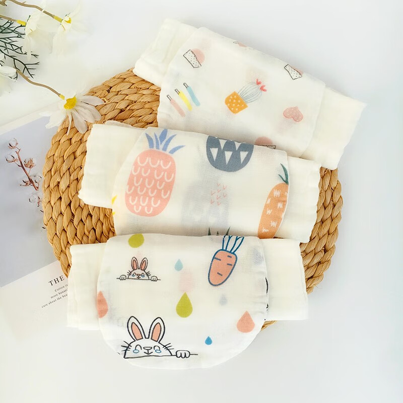 Baby cotton gauze sweat absorbent tissue Spring and summer thin newborn pad Baby Sling Kindergarten Children's baby sweat absorbent tissue 3 pack Rabbit+Pineapple+Love four layer gauze thin size 25 * 36cm [Image price brand quotation]-