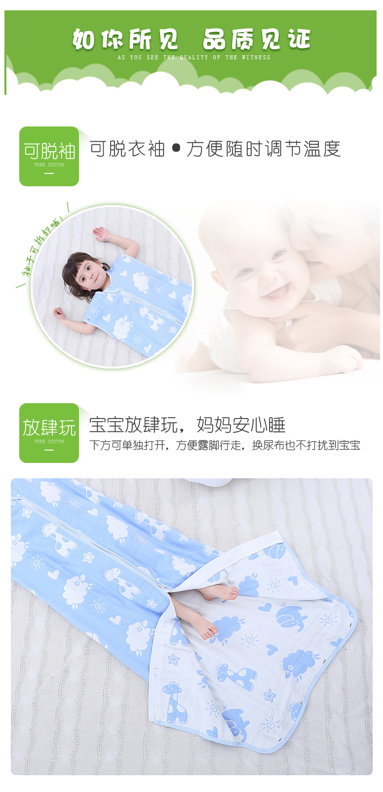 | Product name: Hesheng Spring and Summer Split leg sleeping bag for young children, Spring and Autumn thin pure cotton baby, elementary school, and children's kick protection quilt, all-season universal blue ice bear [three layer gauze, used at 24-30 degrees] 145cm [suitable for height 120-145cm] | Product name: Hesheng Spring and Summer Split leg sleeping bag for young children, Spring and Autumn thin pure cotton baby, elementary school, and children's kick protection quilt, all-season universal blue ice bear [three layer gauze, used at 24-30 degrees] 145cm [suitable for height 120-145cm] |