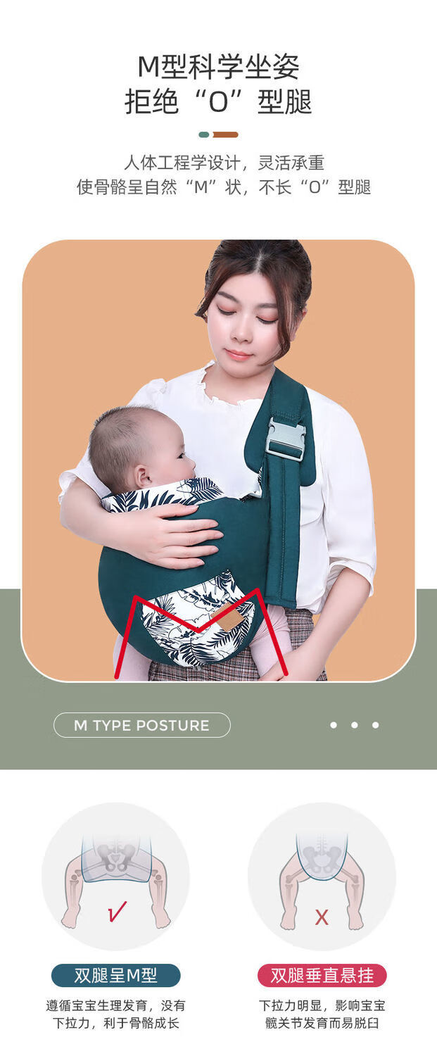 Multifunctional newborn baby shoulder strap, horizontal hug style, newborn baby sleeping, cute rabbit prince, four seasons breathable front hug style, baby holding tool, cotton, black and white leaves, breathable mesh style